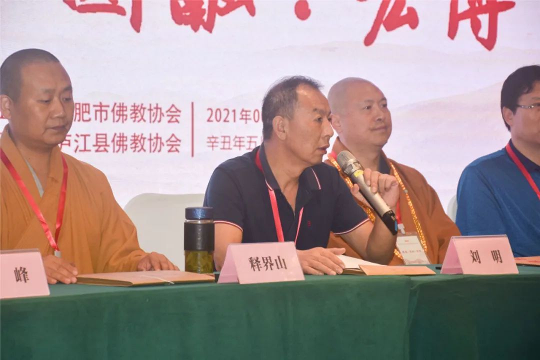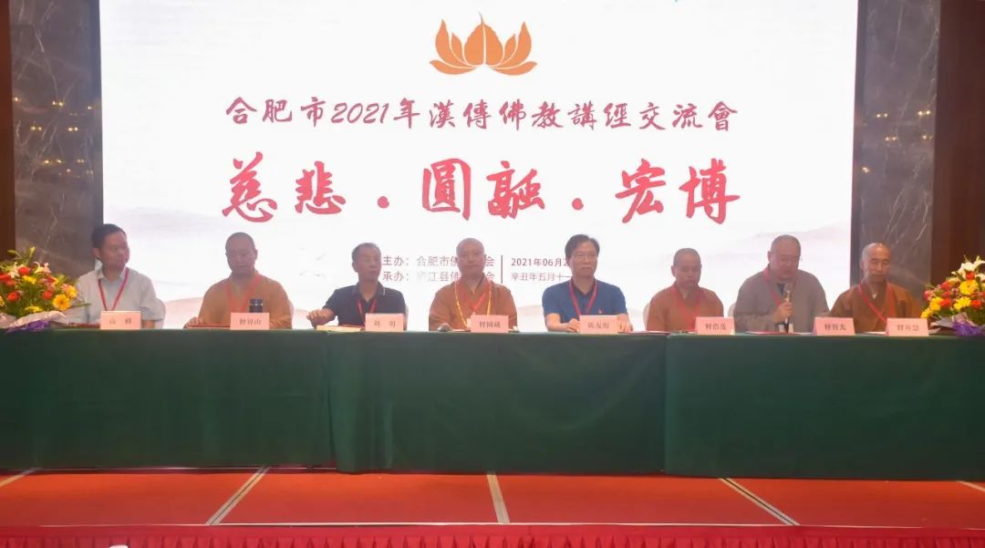 合肥市委统战部宗教一处处长刘明,庐江县委统战部副部长、民宗局局长陈友海,合肥市佛教协会会长圆藏法师,副会长界山法师、浩莲法师、智光法师(兼秘书长)、开慧法师等出席会议。开幕式由智光法师主持。开慧法师致欢迎词,陈友海局长发表讲话,对讲经交流会的召开表示祝贺。