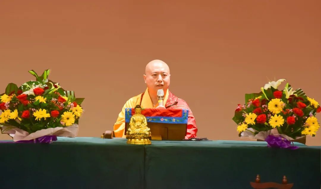 开幕式结束后,大众礼请圆藏法师做示范讲经。圆藏法师以《如何安顿身心》为题,引经据典,为大众做慈悲开示.
